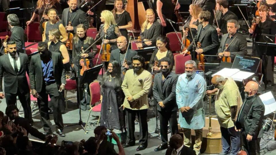 ఈ సినిమాలో బాలీవుడ్ స్టార్స్ ఆలియా భట్, అజయ్ దేవగన్ అలాగే బ్రిటన్ మోడల్ ఓలివియా మోరిస్ లాంటి క్రేజీ స్టార్స్ నటించడంతో ఈ మూవీకి సూపర్ బజ్ ఏర్పడింది.ఈ చిత్రం అనుకున్నట్లు గానే భారీ విజయం సాధించింది.. దాదాపు రూ.1100 కోట్లకి పైగా వసూళ్లు రాబట్టింది. అయితే తాజాగా లండన్ లోని అత్యంత ప్రతిష్టాత్మకమైన రాయల్ ఆల్బర్ట్ హాల్ లో ఈ చిత్ర లైవ్ కాన్సర్ట్ ఘనంగా నిర్వహించారు. దీనికోసం రాంచరణ్, జూనియర్ ఎన్టీఆర్, రాజమౌళి, కీరవాణి ఒకే వేదికపై సందడి చేశారు. ఆ దృశ్యాలు సోషల్ మీడియాలో బాగా వైరల్ గా మారాయి. వేదికపై ఎన్టీఆర్,రామ్ చరణ్ బాండింగ్ చూసి ఫ్యాన్స్ మురిసిపోయారు.
