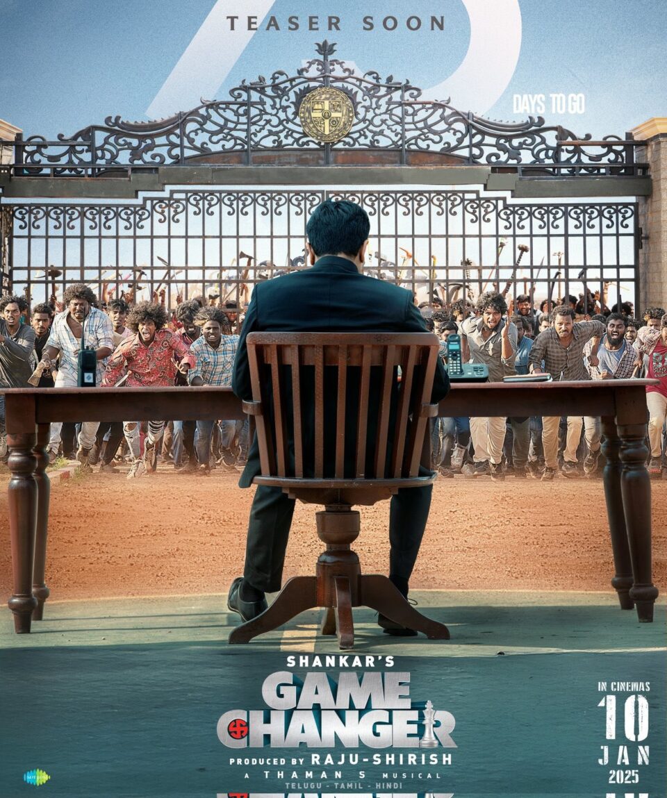 గేమ్ ఛేంజర్ సినిమా విడుదలకి ఇంకా 75 రోజులు సమయం ఉందని రిలీజ్ చేసిన పోస్టర్ లో రామ్ చరణ్ మొహం కనిపించకుండా బ్యాక్ షాట్ లో పోస్ నీ చిత్ర బృందం బయటకి వదిలింది.