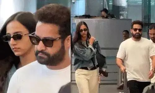 తాజాగా ఎన్టీఆర్ ఆయన భార్య లక్ష్మీ ప్రణతితో కలిసి ఎయిర్‌పోర్ట్‌లో దర్శనమిచ్చారు.ఎంతో క్యాజువల్ లుక్‌లో కనిపించిన ఎన్టీఆర్, తన లుక్‌తో అభిమానులను ఫిదా చేశాడు. వైట్ టీ-షర్ట్, బ్లాక్ ట్రౌజర్స్, స్టైలిష్ కళ్లజోడు ధరించిన ఎన్టీఆర్ ఎయిర్‌పోర్ట్ లో సరికొత్త లుక్‌లో అదరగొట్టాడు. మరోవైపు, లక్ష్మీ ప్రణతి డెనిమ్ జాకెట్, క్రీమ్ కలర్ ప్యాంట్ మరియు స్నీకర్స్‌తో క్యాజువల్ స్టైల్‌ను మెయింటైన్ చేశారు.ఈ క్యూట్ కపుల్ లుక్స్ ప్రస్తుతం సోషల్ మీడియాలో వైరల్ అవుతున్నాయి..